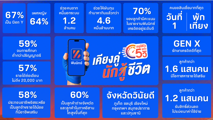ฟินนิกซ์ (FINNIX) แอปสินเชื่อพลังเอไอหัวใจมนุษย์ โดยบริษัท มันนิกซ์ จำกัด (MONIX) ภายใต้กลุ่มเอสซีบีเอกซ์ ฉลองครบรอบ 5 ปีแห่งการสร้างโอกาสทางการเงินให้คนไทยห่างไกลจากหนี้นอกระบบ เผยอินไซต์ธุรกิจและพฤติกรรมผู้ใช้งานแอปกว่า 5 ล้านรายทั่วประเทศ พร้อมปล่อยแคมเปญใหม่ “เคียงคู่นักสู้ชีวิต (The Life Fighters)” เพื่อสนับสนุนและเชิดชูคนมาหากินหรือนักสู้ชีวิตให้เข้าถึงสินเชื่อถูกกฎหมายได้อย่างมั่นใจ ทั้งยังปฏิวัติวงการสินเชื่อเงินด่วนด้วยฟีเจอร์ใหม่ “อนุมัติไวสุดใน 5 วิ” ที่ตอบโจทย์ลูกค้าในยุคเอไอได้รวดเร็วทันใจ ตอกย้ำความเป็นผู้นำด้านนวัตกรรมสินเชื่อดิจิทัลอย่างแท้จริง
